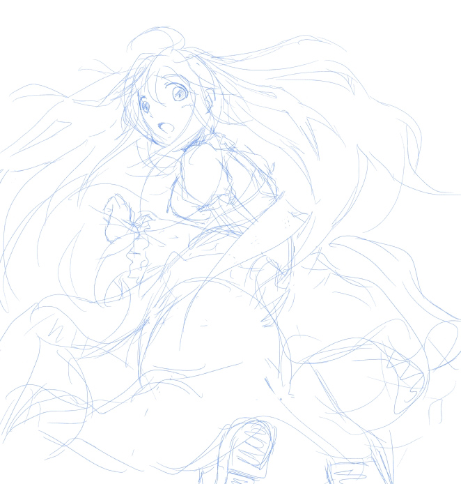 描いていてスカートのふわり具合を調整したら尻とか隠れた…本末転倒