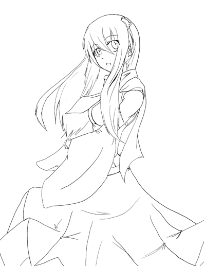 描きかけの早苗さん。スカートの内側とかマフラーの裏が消えたりだとか、四次元空間殺法が繰り広げられてます。
